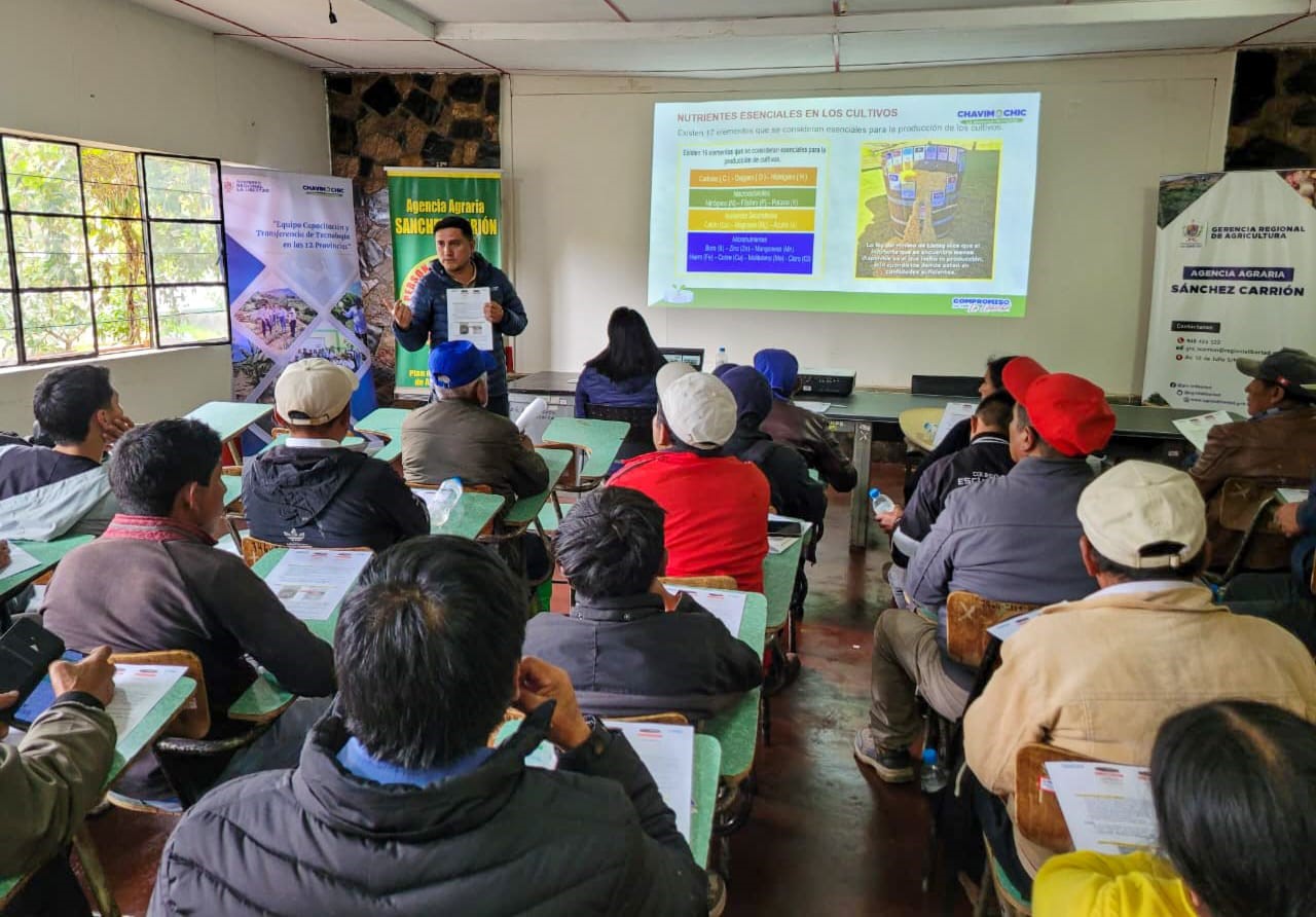 El Proyecto Especial Chavimochic (PECH), del Gobierno Regional La Libertad, desarrolló una jornada de capacitación técnica y transferencia de tecnología que reunió a más de 40 agricultores en el auditorio de la Agencia Agraria de Sánchez Carrión, en Huamachuco. La actividad tuvo como objetivo fortalecer las capacidades productivas y promover prácticas modernas en cultivos estratégicos de la sierra liberteña.