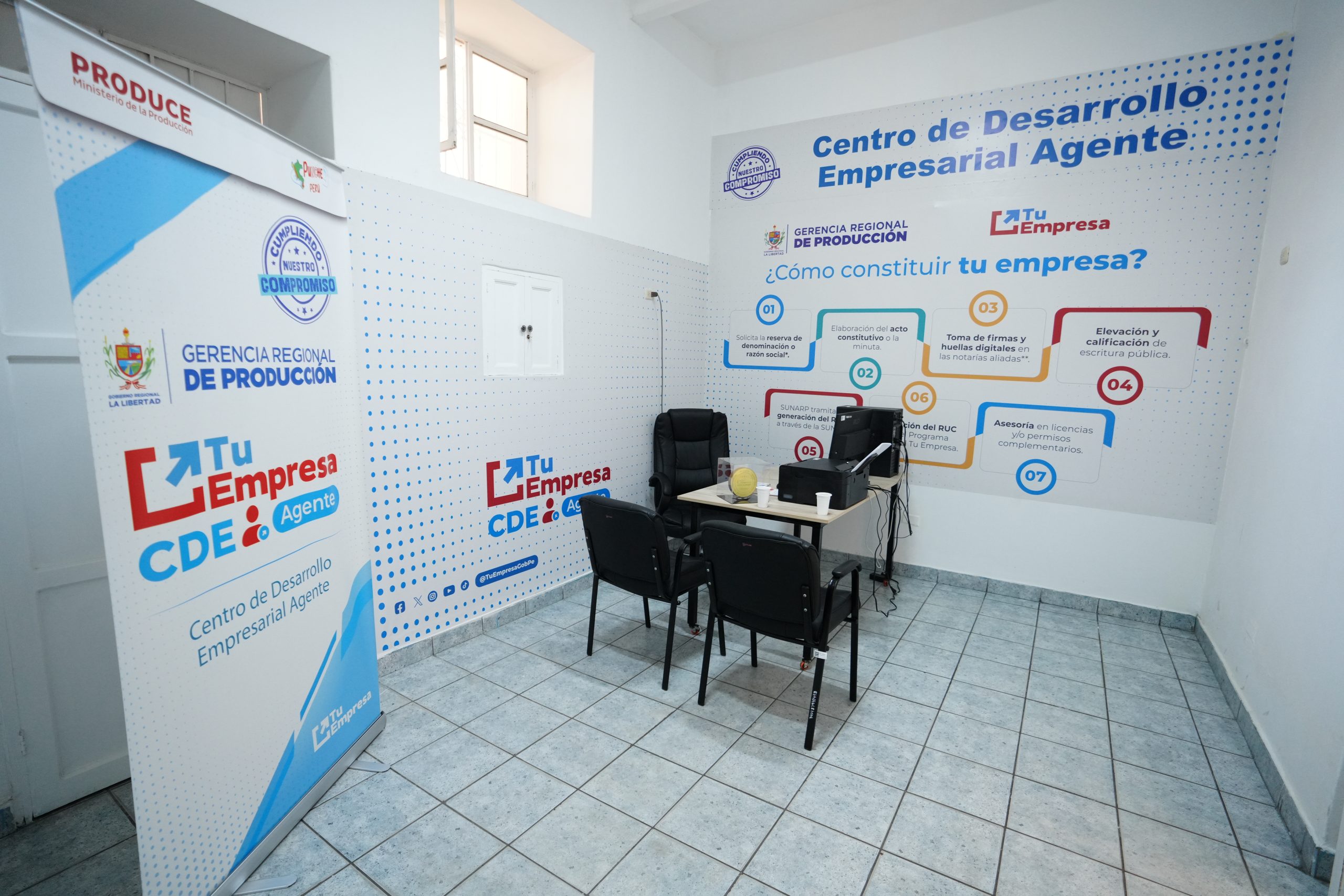 El Gobierno Regional de La Libertad, a través de Gerencia Regional de la Producción, inauguró las nuevas instalaciones del Centro de Desarrollo Empresarial (CDE), agente del programa «Tu Empresa», un espacio diseñado para acompañar integralmente a emprendedores y micro y pequeñas empresas de la región La Libertad con servicios que promueven la formalización, digitalización, competitividad y sostenibilidad.